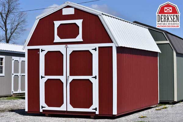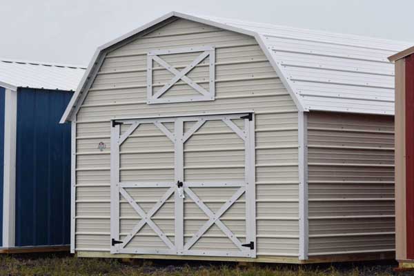 The Lofted Barn comes with a loft in each end. 8′ wide buildings come with a single shop built door. 10′ and wider come standard with double shop built doors.